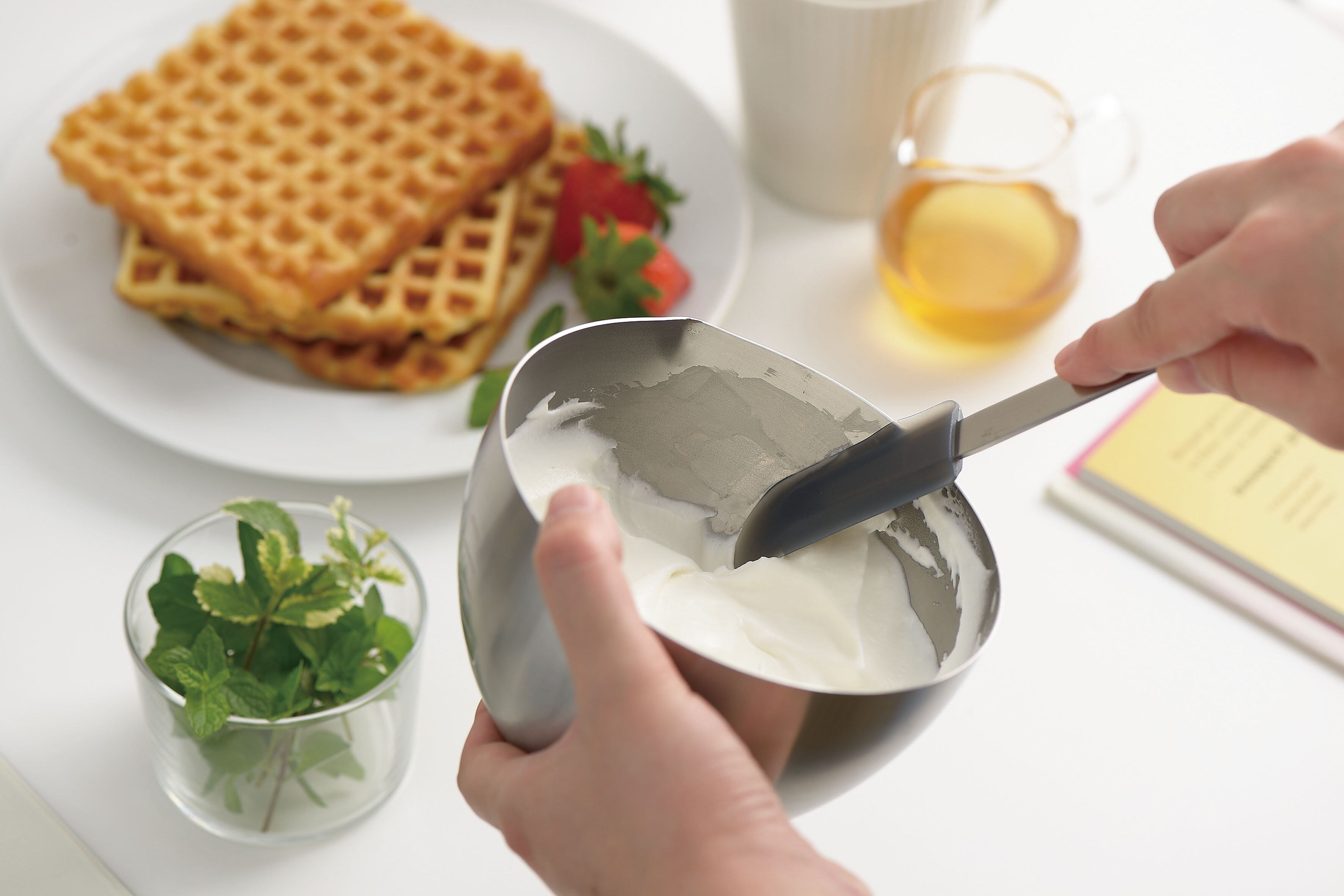 フチがないから洗いやすく、卓上でも使えるデザインです。