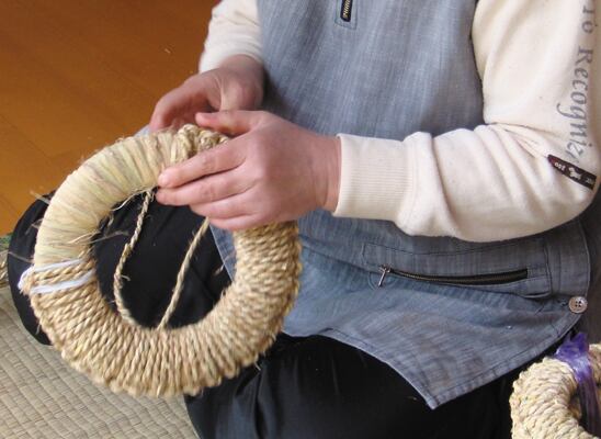 新潟県佐渡ヶ島でお米を取った後のワラで作られている釜敷き(鍋敷き)です。