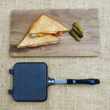 フッ素樹脂加工されたホットサンドメーカー。食パン(8枚切り)にお好みの具材を挟んで焼くだけで簡単に完成するホットサンドは、朝食はおもちろん、アウトドアメニューとしても定番に。外側はカリッと、中はしっとりふっくら仕上がるのが魅力です。