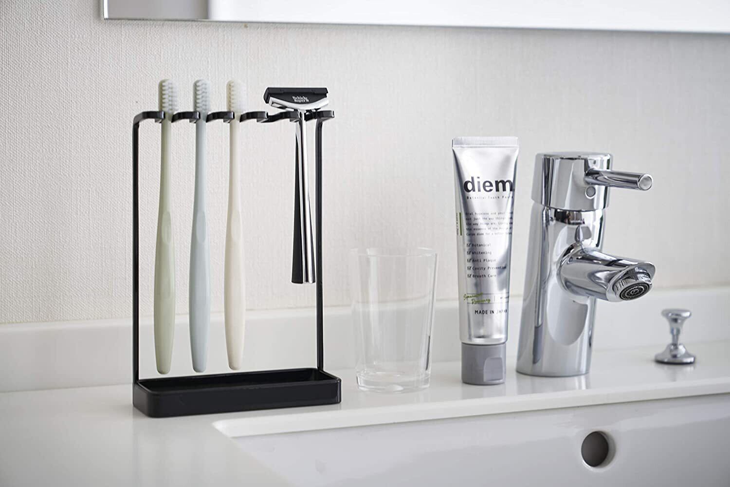 歯ブラシやシェーバーを掛けて収納。替えの電動歯ブラシの収納にも。