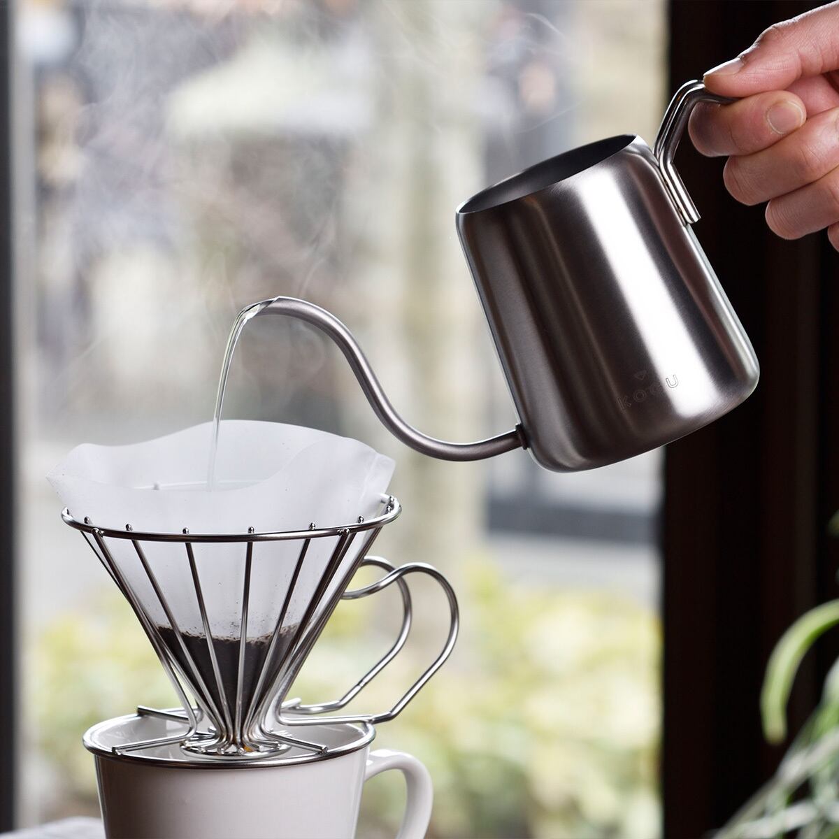 コーヒーサーバーやカップに直接セットして使用できる形状です。ワイヤーフレームのすき間からドリップした量が確認できるので、淹れすぎも防ぐことができます。